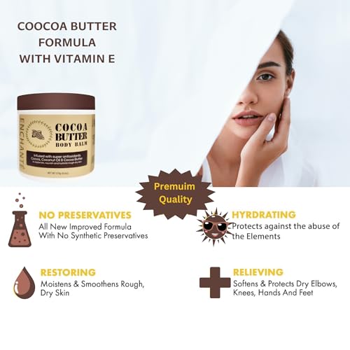 Enchante Cocoa Butter Body Balm – With Vitamin E. Heals Dry Skin. Great For Hands, Feet and Face. Complete Skin Care for All (1unit)