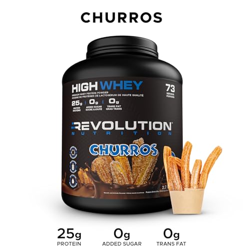 Revolution Nutrition, High Whey, Protein Powder 6LB, Whey Isolate, Superior Formula, Gluten Free, Lean Muscle Mass For Men & Women, 25g of Protein Per Scoop, 2.7kg, 73 Servings (Churros, 6 Pound)