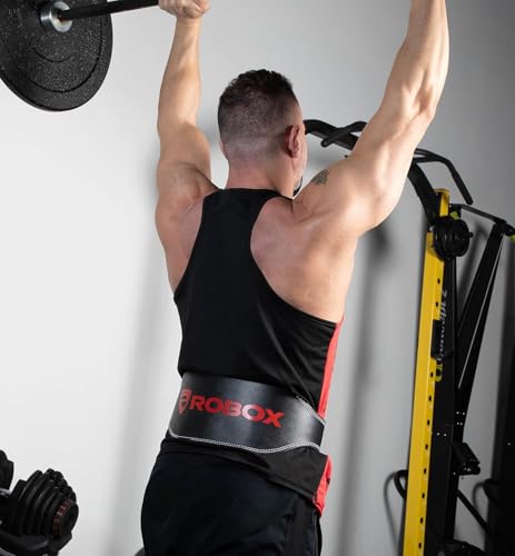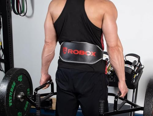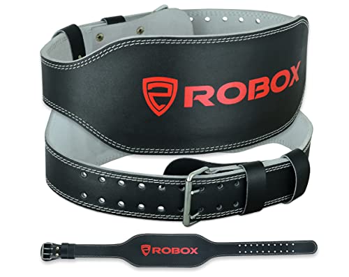 ROBOX Weight Lifting Belt, Gym, Padded Back Support, Training, Powerlifting, Deadlift, Squat, Lumbar Support, Workout 6″ Cowhide Leather Belt